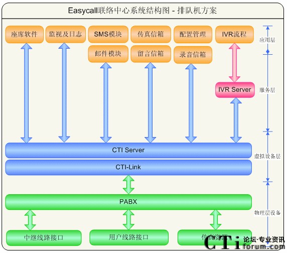 圖2-4 EasyCall聯(lián)絡(luò)中心系統(tǒng)結(jié)構(gòu)圖-排隊(duì)機(jī)方案