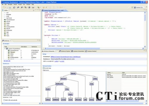 這里強調的Eclipse插件,除了本身作為優(yōu)秀工具,還提供了附加于Eclipse工作臺內的順暢互操作性:你可以一邊看著對應呼叫者輸入的對話流程,一邊檢查和完成語音識別語法;你也可以一邊構建連接后臺的Web服務代碼,一邊通過簡單地拖放來調整應用邏輯。開發(fā)者首次擁有了對所有應用方面的同時控制,無須在不同IDE之間進行切換,或者在選擇單一環(huán)境時在特性上的折衷。