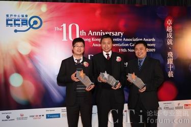 CTI論壇(ctiforum)11月20日消息(記者 張塵):11月19日晚,大中華區(qū)領(lǐng)先信息通訊技術(shù)服務(wù)商第一線安萊于2009年香港客戶中心大獎(jiǎng)評(píng)選晚會(huì)中,再次囊括三項(xiàng)大獎(jiǎng):最佳外包客戶中心 (呼入)、最佳華南客戶中心 (100席以上) 及最佳離岸客戶中心。加上上個(gè)月由中國呼叫中心協(xié)會(huì)CNCCA授予的“2009中國(亞太)最佳外包呼叫中心”及全球IP通訊聯(lián)盟所頒發(fā)的“最佳外包呼叫中心供應(yīng)商(國內(nèi))”獎(jiǎng),第一線安萊在這個(gè)金秋時(shí)節(jié)可謂收獲頗豐。第一線安萊IP呼叫中心再次獲得業(yè)界的認(rèn)同,這也體現(xiàn)了第一線安萊在該項(xiàng)產(chǎn)品及服務(wù)方面擁有領(lǐng)先的優(yōu)勢,通過持續(xù)進(jìn)步,為客戶創(chuàng)造有利的營運(yùn)模式,也有助于奠定企業(yè)服務(wù)的標(biāo)準(zhǔn),再度奪獎(jiǎng)乃實(shí)至名歸。