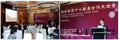 CTI論壇(ctiforum)5月12日消息(記者 潘婷婷):為促進穗港兩地企業(yè)交流與合作,共同提升兩地客戶服務中心的服務品質,2010年4月14日(星期三)11:00-13:30,由廣州市對外貿易經濟合作局、廣州市科技和信息化主辦,廣州軟件合作中心承辦的“穗港客服中心發(fā)展合作交流會”在香港凱悅酒店順利舉行。