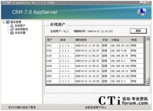 從下圖的列表可以看到實時的用戶連接數,每個客戶端的CPU序列號,硬盤序列,和唯一的登陸序列。并且可以選擇指定的用戶,對用戶做強迫下線,發(fā)送消息,截取用戶屏幕等操作。