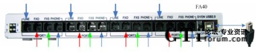 OpenVox的FA40單機(jī)面板為接口包括PSTN接入口(LINE)、用于連接語(yǔ)音板卡FXO口接入口(FXO)、用于連接語(yǔ)音板卡FXS口接入口(FXS)和用于連接話(huà)機(jī)端口(Phone),usb口用于連接語(yǔ)音通信服務(wù)器,開(kāi)關(guān)用于切換電路狀態(tài),(可以手動(dòng)或者通過(guò)命令行進(jìn)行切換),如圖所示: