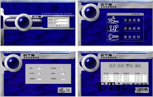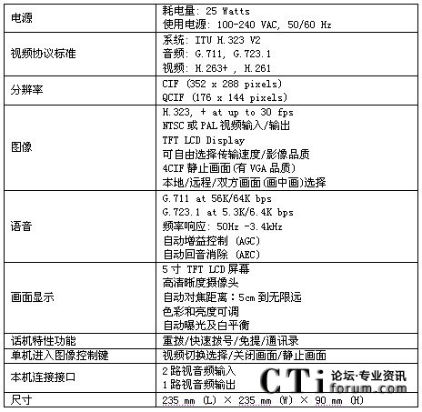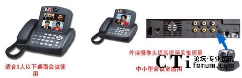 方案中采用的終端為CTS的可視電話終端,該可視電話適合于1-3人的桌面會議,自帶5寸的屏幕,不用額外連接電視機(jī),特別適合于縣級鄉(xiāng)級等底等級的機(jī)構(gòu)使用。同時可視電話可以外接入清晰的攝像頭,滿足5-10人小會場對于視頻的清晰度要求。