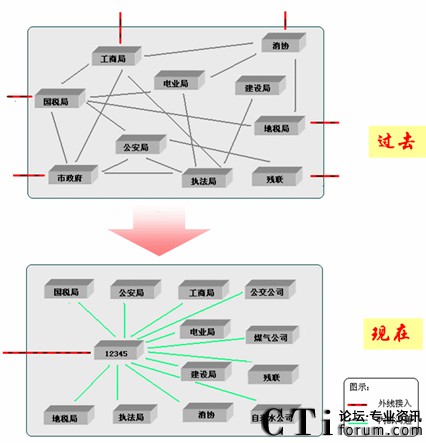 “12345” 政府熱線系統(tǒng)建設的最終目標,將要整合現(xiàn)有的全部政府部門公開電話資源,將所有的此類電話統(tǒng)一為一個號,使政府公開電話服務范圍覆蓋到政府公共服務的全部領域。通過12345電話網(wǎng)絡將各級機構服務電話資源進行互聯(lián)(市區(qū)縣政府、公安非應急電話、社保局、民政局、建設局、規(guī)劃局、國稅局、地稅局、教育局、衛(wèi)生局、文體局、旅游局、交通局、房產(chǎn)局等),這樣市民就不用再被這些部門上百個不同的電話號碼弄得無所適從,也不會因為弄不清楚事情歸哪個部門管了。