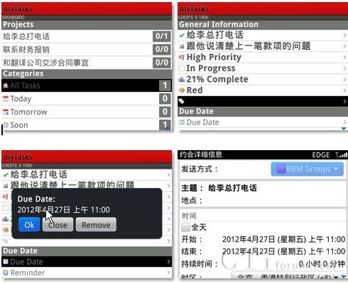 CTI論壇(ctiforum)4月26日消息(記者 歐陽): 再過幾天就是五一勞動節(jié)小長假啦!節(jié)前的最后幾天相信大家都在快馬加鞭想把手頭上的工作盡快處理完畢,好能過個安心的節(jié)日假期。我們也特別為大家搜集了黑莓智能手機(jī)上能夠在效率方面助大家一臂之力的幾款應(yīng)用,希望它們可以在工作生活中為諸位帶來切實(shí)有效的幫助!