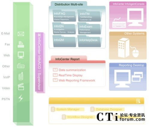 由于今日的客服中心已是多媒體的客服中心,不再只有單純的電話進(jìn)線,客戶尋求服務(wù)的管道更多樣化,InfoCenter Total Solution可以完全整合應(yīng)用程序、數(shù)據(jù)倉儲(chǔ)系統(tǒng)、多媒體溝通互動(dòng)管道,藉由不同的系統(tǒng)達(dá)到分析與處理客戶需求,并且達(dá)到一致性的工作流程管理,提供更高質(zhì)量的服務(wù)。