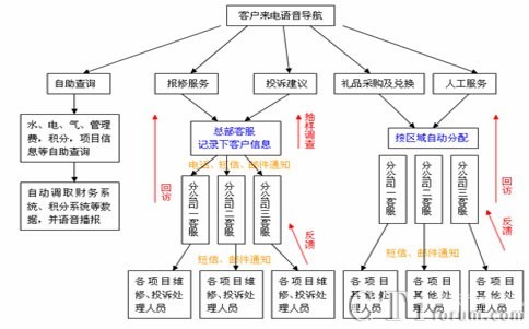 自動判斷用戶來電,識別客戶身份,屬哪個服務中心(管理處),能自動接入對應地區(qū)的客服座席,座席人工可直接對來電進行分類處理,報修類彈出派工單,投訴類彈出投訴處理記錄,客戶采購彈出采購單,然后由座席人員將相關記錄錄入系統(tǒng)內(nèi),其中報修和投訴內(nèi)容一經(jīng)錄入,無權限人員不能隨意更改,確認后通過郵件、手機短信分派給責任人處理,同時顯示事件處理狀態(tài)。每個事件過程有時效限制,客戶投訴和報修服務需要設置服務超時時間,系統(tǒng)視超時時間長短自動發(fā)送手機短信或(和)郵件通報給相關領導。超時與報送領導間的對應關系由管理員設置指定。