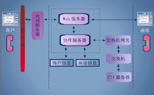 給基于交換機的呼叫中心,配備Web協(xié)作服務(wù)器和客戶端、座席端軟件包,使得利用PC上網(wǎng)的客戶可以通過因特網(wǎng)呼叫交換機中的組,使得應(yīng)答的座席,可以和客戶進(jìn)行實時文字交談、護(hù)航瀏覽、表單共享和共享白板。