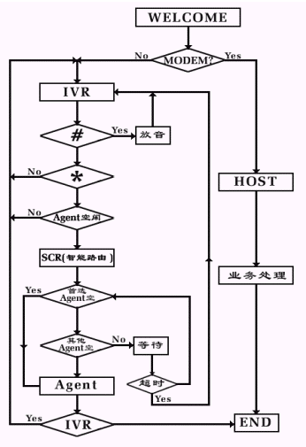 SCR為智能路由,Agent為人工座席,IVR為語(yǔ)音模塊。