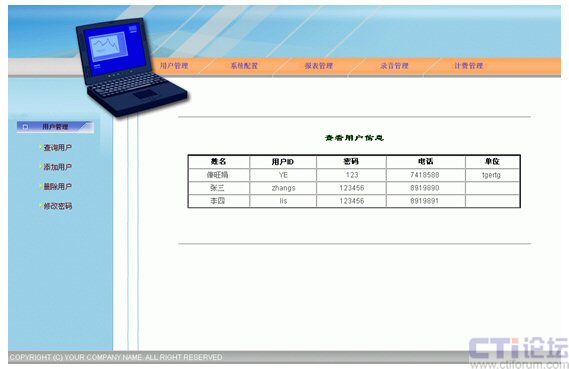 監(jiān)控功能:利用通話錄音、監(jiān)聽(tīng)等手段,對(duì)服務(wù)質(zhì)量進(jìn)行監(jiān)控,實(shí)現(xiàn)對(duì)服務(wù)員的考核。