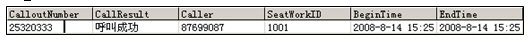 備下次呼叫參考, 同時記錄了工號及呼出主叫, 當(dāng)該客戶(25320333)呼入時, CTI將自動導(dǎo)航該客戶(被叫號碼)到對應(yīng)的業(yè)務(wù)員工號(1001)和主叫號碼(87699087),