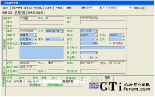 銷售人員(直銷部、市場部、回訪部)開據(jù)銷售訂單后,系統(tǒng)并不馬上提交物流部,必須進行物流確認后,系統(tǒng)自動將該訂單提交給物流部。物流確認后的訂單將不能進行任何修改。