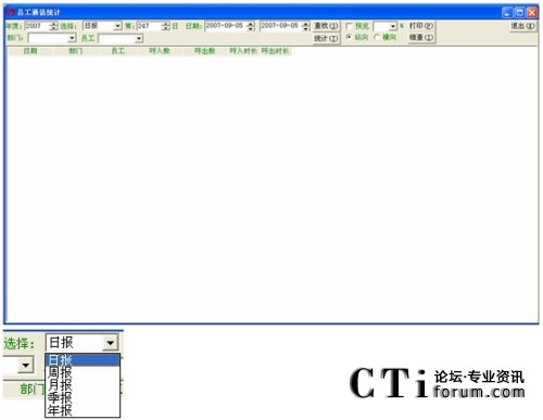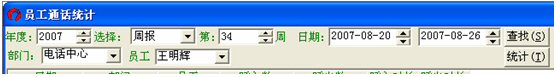 默認的情況下是日報,下面以統(tǒng)計2007年度第34周,電話中心的員工王明輝為例: