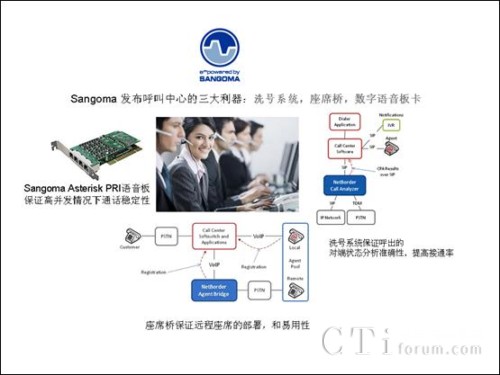 多年的北美通信市場和asterisk開源市場的磨練,和Sangoma產(chǎn)品通過在國際市場的經(jīng)驗,sangoma 發(fā)布的產(chǎn)品充分得到了呼叫中心國際廠商和asterisk 呼叫中心廠家的認(rèn)可,在洗號系統(tǒng),橋座席,語音板卡上面保證了呼叫中心的穩(wěn)定性,提高了呼叫中心的接通率,節(jié)省了座席遠(yuǎn)程管理的成本。同樣,Sangoma 也非常希望分享Sangoma在國外市場的成果,把卓越的產(chǎn)品帶給呼叫中心的廠家和客戶。