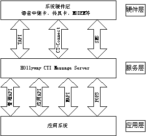 如圖所示為HOLLYWAY CTI Message Server基礎(chǔ)版結(jié)構(gòu)圖。
