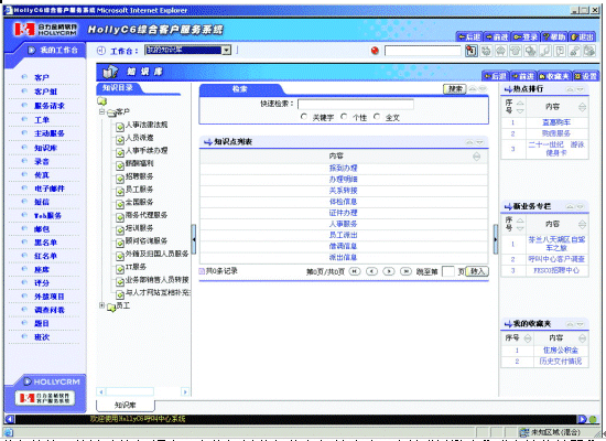 知識(shí)管理系統(tǒng)可用來(lái)分類管理業(yè)務(wù)相關(guān)知識(shí)點(diǎn)信息,供前臺(tái)座席人員在解答客戶咨詢時(shí)查閱,并可作為文件發(fā)布、管理的綜合平臺(tái)。知識(shí)管理是現(xiàn)代客戶服務(wù)中心的重要支撐