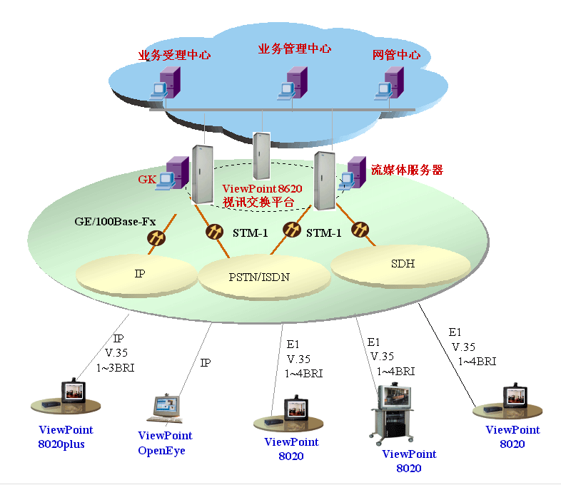 對于專網(wǎng)或非面向運(yùn)行的視訊網(wǎng)絡(luò)建設(shè),“視點(diǎn)通”ViewPoint®8000綜合視訊系統(tǒng)可以提供寬窄帶一體化的視訊交換平臺(tái),提供各種線路接口方式,可充分利用專網(wǎng)和企業(yè)的現(xiàn)有網(wǎng)絡(luò),同時(shí)考慮網(wǎng)絡(luò)的發(fā)展需要,支持?jǐn)U展其它接口,保護(hù)用戶投資。