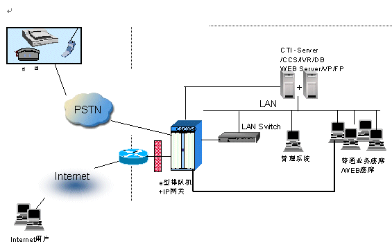 。。華為的INtess®-e型多媒體呼叫中心產(chǎn)品,是集成了交換機(jī)和計(jì)算機(jī)網(wǎng)絡(luò)的系統(tǒng),根據(jù)國(guó)內(nèi)各經(jīng)營(yíng)服務(wù)行業(yè)的業(yè)務(wù)特點(diǎn)和發(fā)展趨勢(shì),以及華為公司對(duì)國(guó)內(nèi)電子商務(wù)發(fā)展的深刻理解,以充分理解和貼近用戶需求為設(shè)計(jì)、開(kāi)發(fā)理念推出的高集成度的小型呼叫中心平臺(tái)。