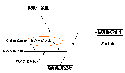 為了解決問題,我們首先進(jìn)行問題的分析。造成客服中心服務(wù)水平下降的主要原因是服務(wù)需求的增加和服務(wù)資源的不足帶來的矛盾。面對這種性質(zhì)的矛盾,解決辦法要么就是限制需求,要么就是提高資源。由于話務(wù)量增加是業(yè)務(wù)發(fā)展的結(jié)果,屬合理需求,我們不應(yīng)該對其進(jìn)行壓縮,所以只有走提高資源的路子。提高資源又分為兩個方向,一種是通過增加投資使資源的數(shù)量得到絕對的提高,一種是通過加強(qiáng)管理使資源的利用率得到相對的提高。在資源有限的今天,毫無疑問,我們應(yīng)該選擇加強(qiáng)管理的方向。