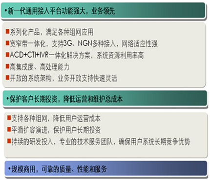 根據(jù)證券行業(yè)的特點(diǎn),華為提供量身定制的證券業(yè)多媒體聯(lián)絡(luò)中心一體化解決方案。作為與客戶有效溝通交互的平臺,華為多媒體聯(lián)絡(luò)中心結(jié)合了電話、傳真、Email、Web和VoIP等現(xiàn)代通信手段,是實(shí)現(xiàn)客戶服務(wù)、銷售及市場推廣等多種目的的高效溝通渠道;谟嬎銠C(jī)與通信集成(Computer