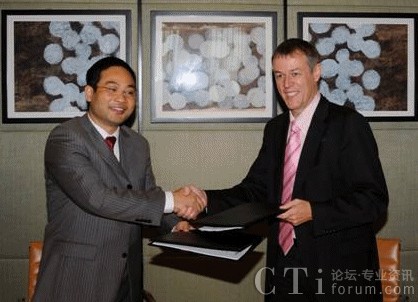 圖:華為無(wú)線產(chǎn)品線副總裁鄭葉來(lái)(左),與AIRCOM International首席技術(shù)官 Ricky Watts簽署技術(shù)合作協(xié)議。