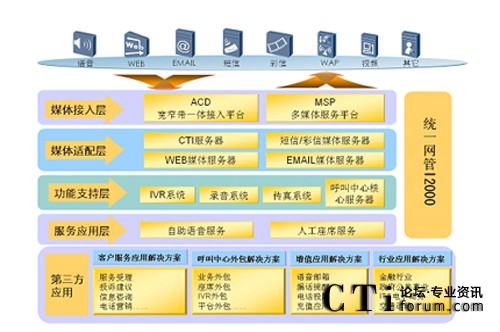 華為多媒體聯絡中心系統(tǒng)不僅支持普通語音呼叫的接入,還支持Email、Fax、短信、視頻等多種媒體呼叫接入,以及通過Web方式發(fā)起的護航瀏覽、點擊通話、文字交談等呼叫的接入,以語音、文字、圖像等多種媒體的組合為客戶提供多通道的服務。用戶可以同時通過語音、圖像、文字多種形式與聯絡中心的業(yè)務代表進行交互,極大的拓寬了用戶與業(yè)務代表之間信息交互的空間,提高了信息交互的效率。