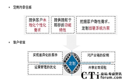 可定制服務主要體現在三個層面,一個是定制化服務,通過全國10多個本地定制開發(fā)中心對客戶提供貼身二次開發(fā)服務,支撐客戶更精細運營其客服系統(tǒng),另一個是定制化路標,定制化創(chuàng)新系統(tǒng)方案,即通過華為MKT、行銷、開發(fā)部門對客戶價值需求的深度分析,將客戶需求去粗存精、去偽存真、由表及里、由此及彼“定制提煉”出來,成為我們產品和方案的路標。