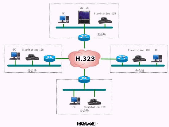 結(jié)合遼寧省消防網(wǎng)絡(luò),本方案設(shè)計(jì)的視頻會(huì)議系統(tǒng)承載在遼寧省消防局的IP網(wǎng)絡(luò)平臺(tái)上,采用國際流行的ITU H.323通信標(biāo)準(zhǔn)。系統(tǒng)采用以MCU為中心輻射各個(gè)會(huì)場電視會(huì)議終端的星型網(wǎng)絡(luò)結(jié)構(gòu)。整套系統(tǒng)由16個(gè)會(huì)場組成,采用美國Polycom公司的ViewStation 128會(huì)議室型終端設(shè)備。網(wǎng)管中心安放一臺(tái)Polycom 公司的MGC-50(多點(diǎn)會(huì)議控制單元),用于對全網(wǎng)終端的控制,實(shí)現(xiàn)多點(diǎn)、點(diǎn)對點(diǎn)的會(huì)議。