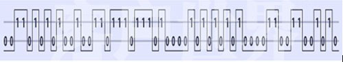 模擬信號(hào)的形成比較簡(jiǎn)單、直觀,但在傳輸過(guò)程中容易受到外界干擾發(fā)生畸變,從而降低通信質(zhì)量;數(shù)字通信是與模擬通信不同的另一種通信方式。數(shù)字信號(hào)的傳輸、記錄、處理都采用數(shù)字(“0”和“1”)信號(hào)。由于數(shù)字信號(hào)抗干擾強(qiáng)、生產(chǎn)的畸變小,也容易消除,因而可以大大提高通信質(zhì)量。使用PCM(Pulse-Code Modulation)調(diào)制后的采樣聲波如下所示: