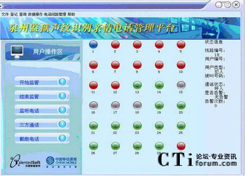 2.在線監(jiān)聽——監(jiān)管員在監(jiān)控終端可以使用電話監(jiān)聽某個(gè)犯人的通話聲音。監(jiān)聽的時(shí)候需要先接通電話;