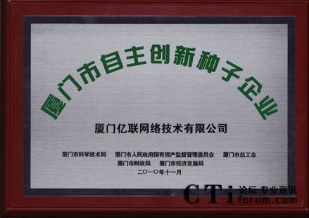 根據(jù)國家科技部、國務院國資委和全國總工會三部委制定的“創(chuàng)新型企業(yè)試點工作實施方案”和廈門市“技術創(chuàng)新引導工程實施方案”具體要求,市科技局、市國資委、市總工會、市財政局、市經(jīng)發(fā)局聯(lián)合開展了2010年廈門市自主創(chuàng)新示范、試點、種子企業(yè)評選工作。經(jīng)專家評審和市五部門聯(lián)合審核后,廈門億聯(lián)網(wǎng)絡技術有限公司(以下簡稱億聯(lián))憑借科技、環(huán)保的產(chǎn)品和強大的研發(fā)實力獲得了廈門市自主創(chuàng)新種子企業(yè)獎。