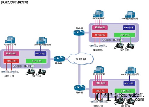 ZX60不僅具有本地電話分機(jī)接口,還運(yùn)行IP電話機(jī)遠(yuǎn)程注冊,無論你若干個(gè)辦公室分布在何處,都可以打造成你內(nèi)部免費(fèi)通話的集團(tuán)電話通信系統(tǒng),節(jié)約你的內(nèi)部通信成本,提高辦公效率。