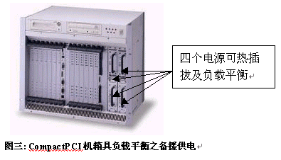 如圖三,CompactPCI機箱備有熱備份電源及風(fēng)扇,電源自動負(fù)載平衡,降低故障發(fā)生率。