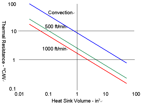 inch x 4.5 inch x 0.7 inch或9.45立方英吋, ,這樣通常約在每分鐘300英尺的風速下有0.62°C/W的熱阻,大部分的處理器在最熱的例子下會到70°C,在一個嵌入式的應用中,周邊的最高溫很容易就達到50°C,透過這些信息,當遇到限制時,一顆微處理器所能產生出來的熱量可透過下列的公式計算而得:最高溫度=熱阻