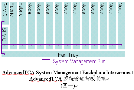 管理系統(tǒng)的信息傳輸和IPMI(智能平臺管理接口)指令集被用作對ATCA框架的管理,包括對電源的管理、電子鑰匙和機(jī)架內(nèi)溫度的監(jiān)控。系統(tǒng)管理是通過機(jī)框管理控制器(ShMC)執(zhí)行的。機(jī)框管理控制器(ShMC)負(fù)責(zé)完成對ACTA系統(tǒng)中的現(xiàn)場置換單元(Field