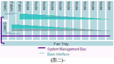 I2C總線使用100Khz時(shí)鐘和3.3V信號。ATCA規(guī)范制定要求2個(gè)IPMB總線,分別冠以IPMB-A和IPMB-B,兩條總線合一稱之為IPMB-0。IPMB可以以雙總線或雙星型配置方式實(shí)現(xiàn)。之所以要求雙IPMB總線是為了保證系統(tǒng)管理子系統(tǒng)的可靠性。IPMB總線被用作聯(lián)接ShMC與ATCA單板和ATCA機(jī)架中FRUs的橋梁。雙IPMB總線可同時(shí)被使用以加倍傳輸頻寬,但設(shè)計(jì)者必須考慮萬一其中一條IPMB總線失靈所帶來的沖擊。典型的ATCA背板上系統(tǒng)管理間的互聯(lián)如下圖所示,在背板上有兩個(gè)ShMC槽位,兩個(gè)交換槽位,11個(gè)節(jié)點(diǎn)槽位和1個(gè)風(fēng)扇的連接。值得說明的是管理總線與所有的節(jié)點(diǎn)槽、交換槽通過一對雙備援的ShMC聯(lián)接。
