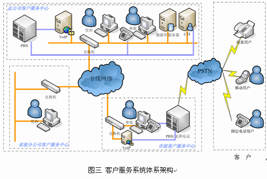 為了幫助企業(yè)支撐其全國業(yè)務(wù)的開展,企業(yè)需要一個定位清晰、分工明確、立體的客戶服務(wù)業(yè)務(wù)軟件,賽迪呼叫針對這樣的需求,提出包括總公司、省分公司、市支公司三個層次客戶服務(wù)業(yè)務(wù)軟件的整體系統(tǒng)架構(gòu)。下面就是這個體系的架構(gòu)圖: