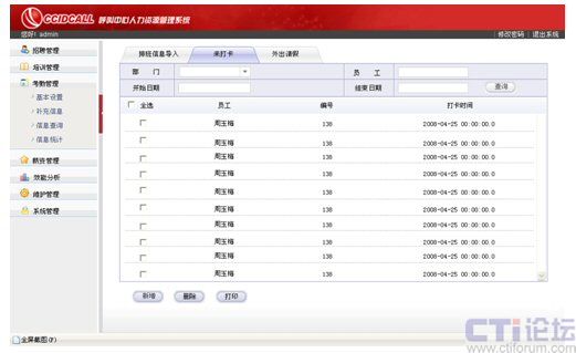 利用統(tǒng)計(jì)部分的四項(xiàng)內(nèi)容實(shí)現(xiàn)對座席從招聘前、招聘中和招聘后的全面管理,通過培訓(xùn)使座席擁有工作必備的知識(shí)、技能和能力,培養(yǎng)他們對企業(yè)的認(rèn)同感、歸屬感,同時(shí),利用詳盡的考勤管理最大限度、公平合理地滿足座席內(nèi)在報(bào)酬和外在報(bào)酬上的期望和需要。