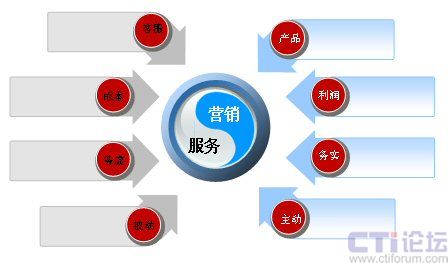 首先看一下服務(wù)營(yíng)銷的理念,有必要來(lái)溫故一下。在傳統(tǒng)的制造業(yè)中,即在工業(yè)經(jīng)濟(jì)的模式下,服務(wù)和營(yíng)銷是截然分割的,一般大家都認(rèn)為,營(yíng)銷在前,服務(wù)在后。服務(wù)有幾大特性,比如在購(gòu)買(mǎi)了產(chǎn)品后才會(huì)有相關(guān)的服務(wù),服務(wù)是無(wú)形的商品,企業(yè)建立的是售后服務(wù)體系。另外,大家都認(rèn)為服務(wù)沒(méi)有辦法進(jìn)行標(biāo)準(zhǔn)化,從這個(gè)角度說(shuō),大家一看到服務(wù),就會(huì)聯(lián)想:客服、成本、務(wù)虛、被動(dòng)等詞匯。服務(wù)體現(xiàn)的是一種理念,所以大家認(rèn)為比較虛。說(shuō)到服務(wù)是被動(dòng)的,實(shí)際是與營(yíng)銷相比,營(yíng)銷是比較主動(dòng)的。拿呼叫中心來(lái)說(shuō),客服人員坐在座位上,等待著客戶打來(lái)電話,而不能對(duì)電話進(jìn)行預(yù)測(cè),下一個(gè)小時(shí)會(huì)有多少呼入電話產(chǎn)生、投訴的內(nèi)容會(huì)有哪些、咨詢業(yè)務(wù)量會(huì)有多大,這些誰(shuí)也不能進(jìn)行準(zhǔn)確預(yù)測(cè),所以說(shuō)服務(wù)相對(duì)比較的被動(dòng)。再說(shuō)營(yíng)銷,大家談營(yíng)銷時(shí),能想到的詞匯有:產(chǎn)品、利潤(rùn)、務(wù)實(shí)、主動(dòng)。因?yàn)闋I(yíng)銷是與產(chǎn)品掛鉤,營(yíng)銷又可以賺取利潤(rùn)。另外,之所以說(shuō)營(yíng)銷是務(wù)實(shí)的,因?yàn)闋I(yíng)銷是有指標(biāo)的,每個(gè)月要進(jìn)行考核。同樣如果從呼叫中心的角度談電銷,它是一種主動(dòng)式的外呼。