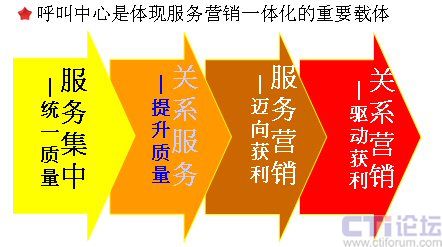呼叫中心是體現(xiàn)服務(wù)營(yíng)銷一體化的重要載體。我在前面已經(jīng)說(shuō)了,服務(wù)和營(yíng)銷一個(gè)是被動(dòng)一個(gè)是主動(dòng),一個(gè)inbound一個(gè)outbound,呼叫中心可以非常完整地將兩者融合到一起,它是一個(gè)非常重要的服務(wù)營(yíng)銷的載體。我們從呼叫中心整個(gè)營(yíng)銷策略的進(jìn)程當(dāng)中,可以看到非常明顯的四個(gè)階段: