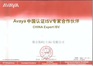 維音數(shù)碼被授權(quán)為AVAYA中國認(rèn)證ISV專家合作伙伴