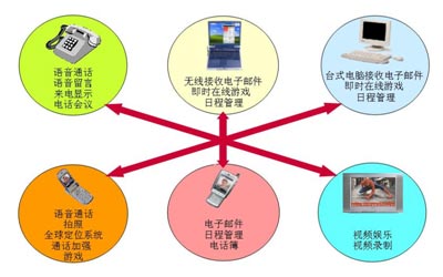 - 企業(yè)統(tǒng)一通信。實現(xiàn)語音、電子郵件、傳真等信息的統(tǒng)一處理,例如當(dāng)用戶不方便用電腦收email時可以用電話收聽email。