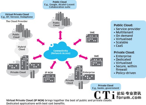 通信服務(wù)提供商非常適合定位于提供云服務(wù),阿爾卡特朗訊企業(yè)部,產(chǎn)品營銷,通信解決方案副總裁(如優(yōu)先級和應用程序的緩存)。對于企業(yè)客戶,他們可以建立虛擬私有云,或簡單地成為純粹的云服務(wù)提供商,通過聚合資源,基于基礎(chǔ)設(shè)施為許多組織同時提供服務(wù)。