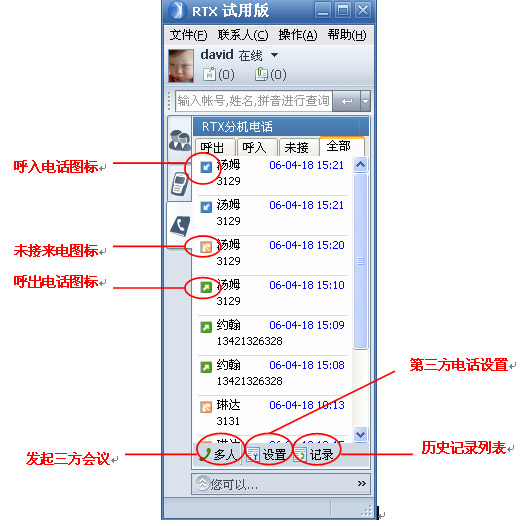 從呼叫歷史發(fā)起呼叫: