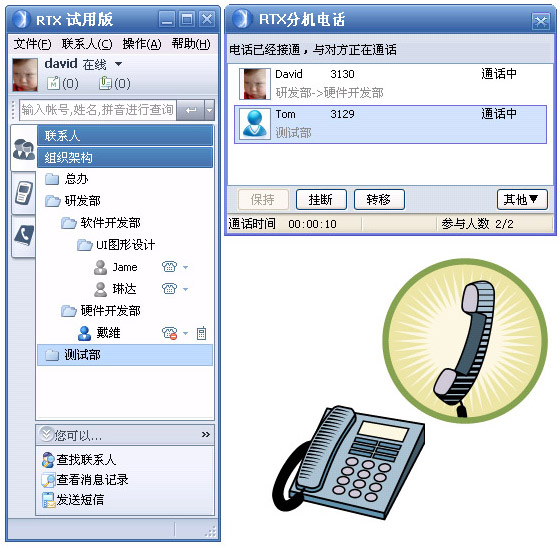 OmniRTX插件實(shí)現(xiàn)了在RTX界面上,直接對(duì)企業(yè)內(nèi)部電話終端進(jìn)行基本呼叫業(yè)務(wù)和電話增值業(yè)務(wù)的控制、設(shè)置和管理,更加方便的提供了企業(yè)內(nèi)部員工之間的交流,進(jìn)一步改善企業(yè)與客戶之間的溝通渠道,所有的溝通和交流不再受時(shí)間、空間的限制,更高質(zhì)量的解決了企業(yè)在語(yǔ)音、文字、圖片以及視頻等多方面的效率問題!