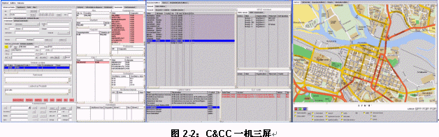 - 一機(jī)三屏:一屏CAD,另一屏為GIS,第三屏專(zhuān)用于資源調(diào)度。與雙屏配置相比,三屏配置的優(yōu)勢(shì)在與資源調(diào)度更加直接、快捷,同時(shí)更可以整合無(wú)線調(diào)度通訊資源。但是三屏配置需要較復(fù)雜的客戶(hù)化工作。