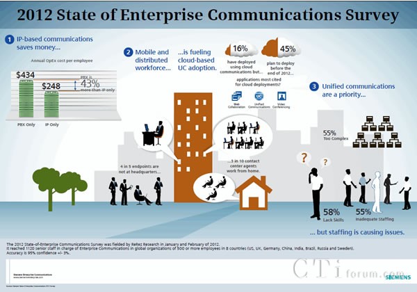 “此項研究的發(fā)現(xiàn)證實了我們從客戶那里得來的反饋:基于IP的統(tǒng)一通信不僅提高了終端用戶的生產(chǎn)效率,還節(jié)約了公司成本,”西門子企業(yè)通信北美區(qū)總裁兼全球市場總監(jiān)Chris Hummel說,“企業(yè)通信正處于從PBX到IP以及從客戶機房到云部署的過渡時期。西門子企業(yè)通信致力于為我們的客戶提供靈活開放的企業(yè)通信解決方案,以適應(yīng)其業(yè)務(wù)需要。這有助于降低IT技術(shù)的復(fù)雜性,更好地支持企業(yè)員工的移動性需求,并幫助企業(yè)完成這種轉(zhuǎn)變!