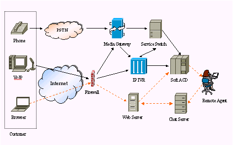 FineSupportIP Contact Center基于先進(jìn)的LodeSoft iAfx體系架構(gòu),完全統(tǒng)一來(lái)自電話和Internet的客戶服務(wù)請(qǐng)求。來(lái)自PSTN的電話語(yǔ)音首先經(jīng)由媒體網(wǎng)關(guān)轉(zhuǎn)換為IP電話數(shù)據(jù)流,具有完全分布式特性,能夠幫助江蘇網(wǎng)通實(shí)現(xiàn)多點(diǎn)的、虛擬統(tǒng)一的客戶服務(wù)中心的目標(biāo);其基于VoIP技術(shù)的軟件ACD(自動(dòng)呼叫分配器)根據(jù)呼叫類型、服務(wù)人員忙閑狀態(tài)、可定制的分配策略進(jìn)行呼叫分配;基于Voice XML技術(shù)的IP-IVR單元,可以靈活地定義自動(dòng)語(yǔ)音服務(wù);系統(tǒng)另一顯著特點(diǎn)是系統(tǒng)遵循開放性原則,可集成第三方硬件和第三方業(yè)務(wù)軟件,使網(wǎng)通逐步實(shí)現(xiàn)統(tǒng)一、全面的客戶服務(wù)體系。