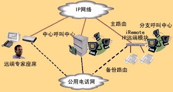 iRemote作為通廣-北電遠(yuǎn)端坐席解決方案可利用現(xiàn)有PSTN或數(shù)據(jù)網(wǎng)絡(luò)實現(xiàn)廉價遠(yuǎn)端專家座席。此方案在交換機端可實現(xiàn)統(tǒng)一排隊,遠(yuǎn)端坐席與本地坐席無異,支持呼叫中心的各種功能,因此為遠(yuǎn)端坐席的實現(xiàn)提供了依據(jù)。此外這種方案完全以IP為基礎(chǔ),采用包交換實現(xiàn)語音傳遞,可輕易納入語音、數(shù)據(jù)、圖像。