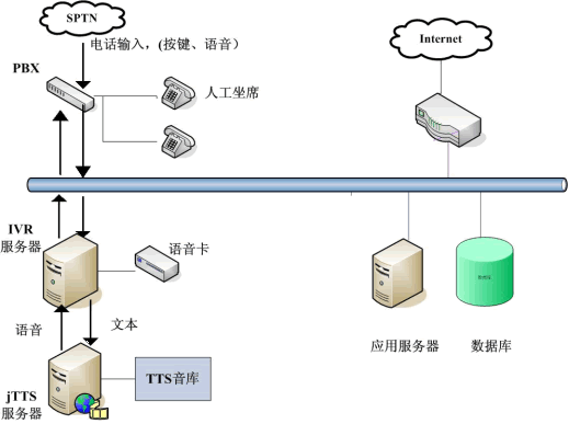 jTTS在12320中的應(yīng)用主要表現(xiàn)在查詢結(jié)果的語(yǔ)音返回和服務(wù)信息的發(fā)布上。只要將捷通TTS服務(wù)器集成到現(xiàn)有的IVR系統(tǒng)中,并且在IVR服務(wù)端設(shè)置好預(yù)讀出的文本即可。眾所周知,“12320”公益服務(wù)熱線需要提供海量關(guān)于我國(guó)公共衛(wèi)生相關(guān)法律法規(guī)、各種重大疾病的預(yù)防保健知識(shí)的宣傳和咨詢服務(wù),如果采用傳統(tǒng)人工座席或請(qǐng)專業(yè)播音人員錄音,費(fèi)時(shí)費(fèi)力,且投入較大。用語(yǔ)音合成技術(shù)(TTS)來(lái)解決,用戶提交查詢請(qǐng)求,IVR服務(wù)器收到請(qǐng)求后會(huì)向其他應(yīng)用服務(wù)器提交,當(dāng)IVR得到查詢結(jié)果后,將文本形式的查詢結(jié)果交給jTTS服務(wù)器,jTTS服務(wù)器返回查詢結(jié)果的語(yǔ)音形式,最終語(yǔ)音在坐席上播放,用戶就可以聽到所要查詢的信息(如圖)。這樣市民可以24小時(shí)撥打熱線,查詢各方面的內(nèi)容,不受時(shí)間限制,既節(jié)約政府開支,為民辦實(shí)事,而且在最大程度上提高了辦事效率,樹立了良好的政府形象。